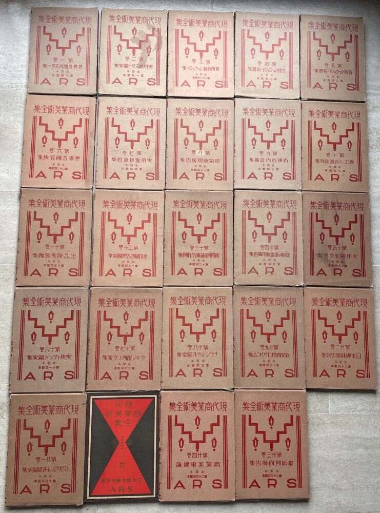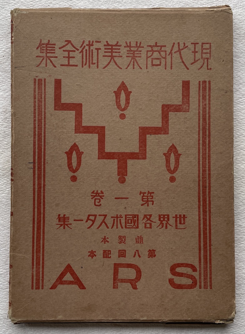 From 1928 to 1930, Tokyo-based publisher Ars アルス issued a major twenty-four–volume illustrated compendium of commercial design with extensive annotation and theoretical analysis titled Gendai shōgyō bijutsu zenshū 現代商業美術全集 in Japanese. With more than two-thirds of each volume comprised of illustrations, this landmark production served as a rich trove of design ideas—all at one’s fingertips—for easy reference or adaptation. Essay contributors included seventy-one well-known professional practitioners, educators, and journalists active in the Japanese design field.