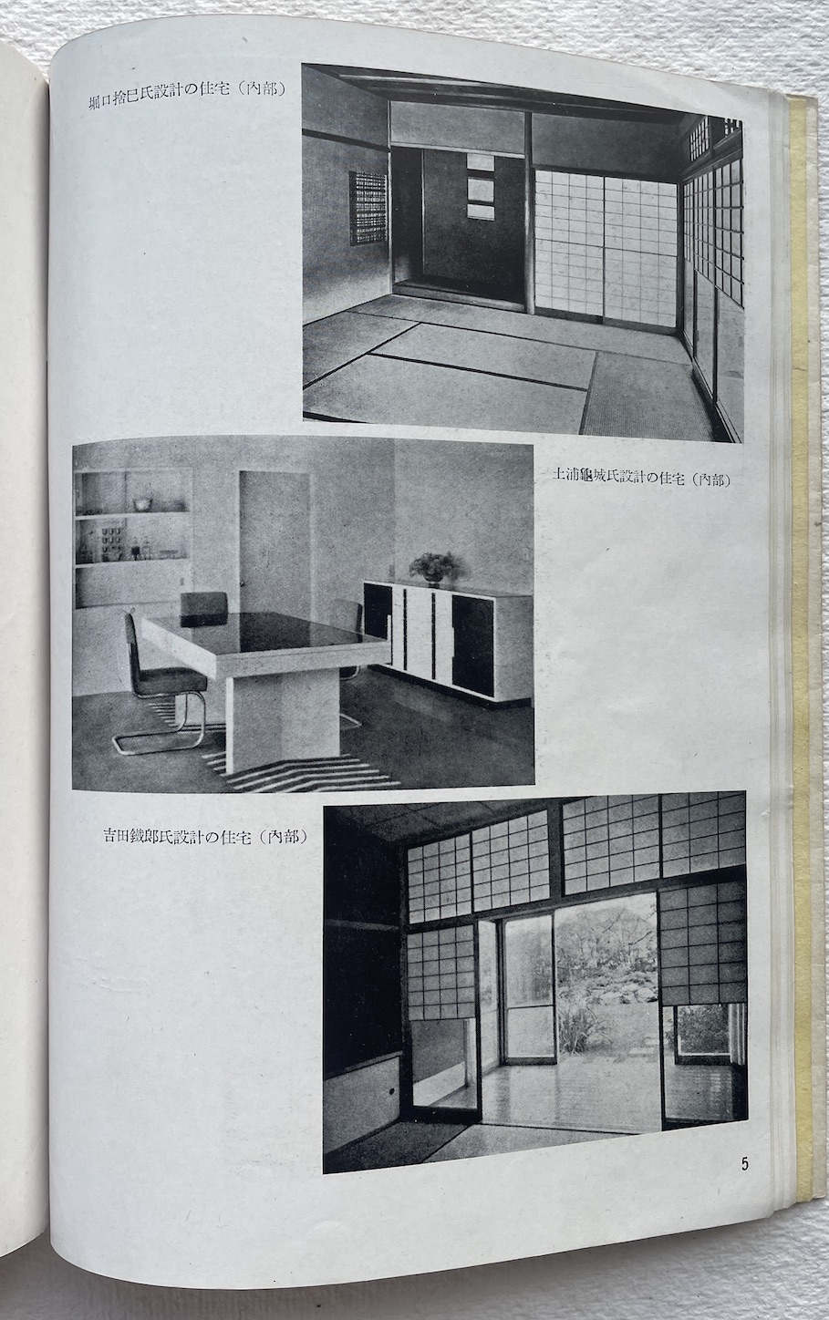 This is a collection of six essays published the year after the end of its short lived journal, Gendai Kenchiku (Contemporary Architecture). It is billed as a special issue. No more appeared. The six articles cover prospects for new Japanese architecture; interwar architecture in France; in Germany; German urban planning; ending with some art and design.“ Quoted from Richard Neylon